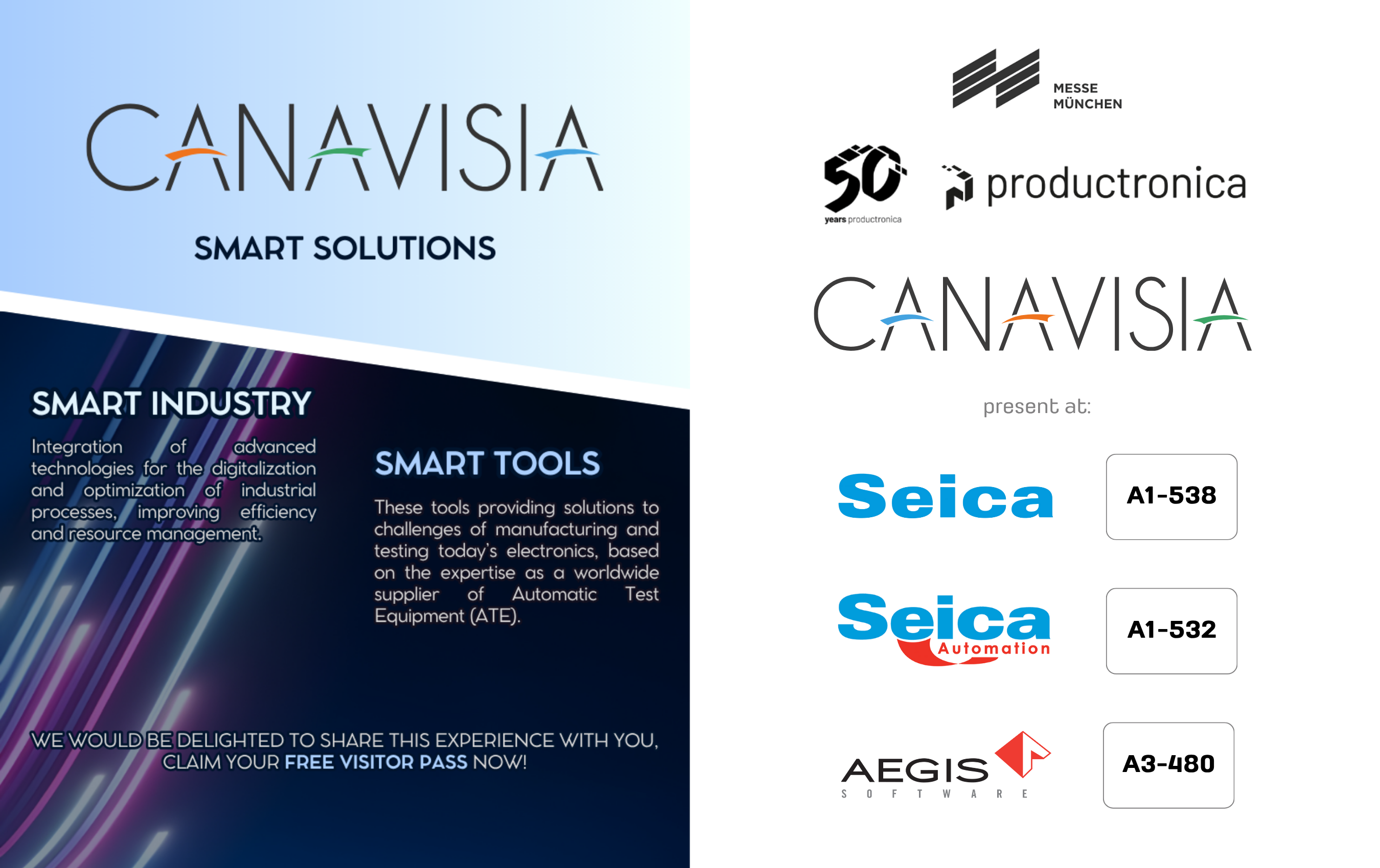- Le soluzioni Canavisia saranno presenti nei booth A1-538 Seica Spa, A1-532 Seica Automation e A3-480 Aegis Software.